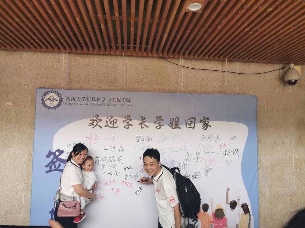 校友返校期间,参观东方红广场、岳麓书院;在信息院院楼前签名并合影留念;走进院楼,再开一次班会;再去一次五食堂,吃一顿学生餐。