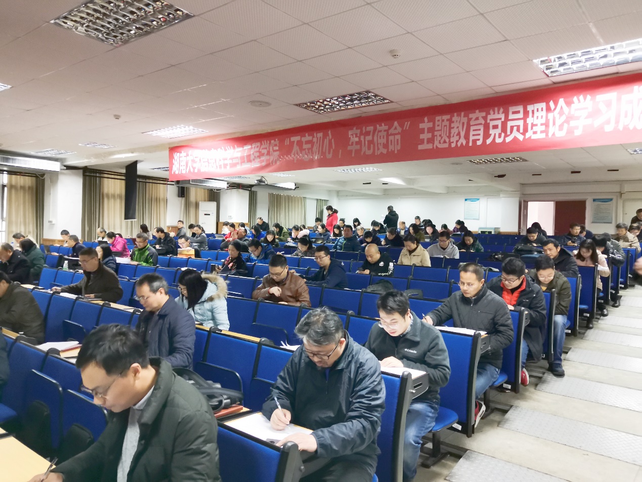 自主题教育开始以来,学院党委聚焦初心和使命,将学习教育贯穿始终,做到注重原原本本学、强化集中研讨学、促进融会贯通学,深入推动学习贯彻习近平新时代中国特色社会主义思想往深里走、往心里走、往实里走。本次测试作为学习教育成效评估的重要环节,在1个教职工考场和7个学生考场同时进行,学生党员为60分钟闭卷考试,测试内容来自《习近平关于“不忘初心、牢记使命”重要论述选编》、《习近平新时代中国特色社会主义思想学习纲要》、《中国共产党第十八届中央委员会第四次全体会议公报》、十九大报告、党章及党的基本知识等,共计144名教职工党员、445名学生党员参试。