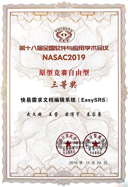 软件工程系师生在NASAC 2019会议中荣获原型竞赛奖