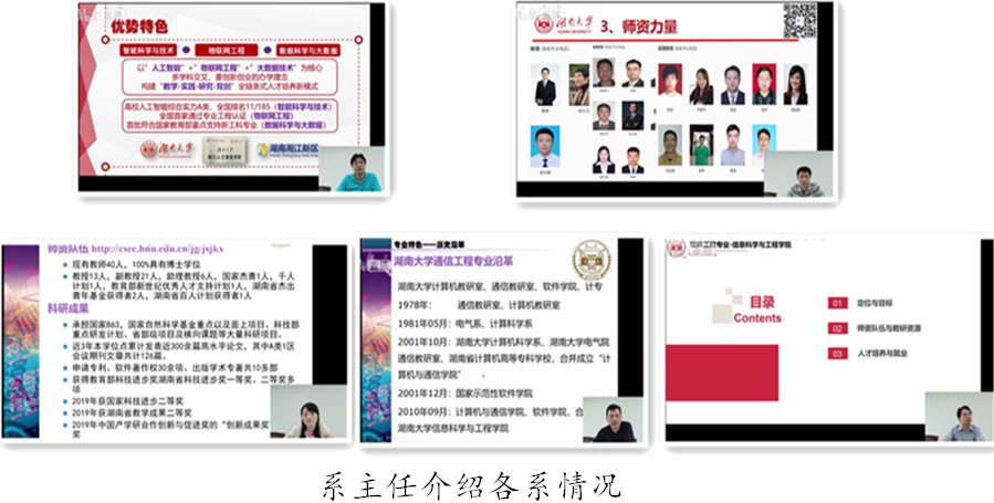 优秀毕业生代表刘虹雨(虎牙)、缪莲海(阿里)和陈岑(新加波国立大学)分享了他们积极进取、勇于创新、拼搏奋斗的学习生活经历,并对同学们寄予了殷切的希望和祝福。计算机科学系、计算机工程系、软件工程系、通信工程系和网络空间安全系主任分别介绍了各系师资、研究团队、重点实验室等情况。