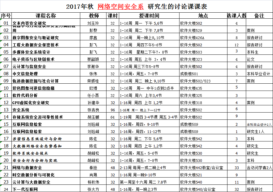 2014级(2018届)本科毕业设计选导师汇总-网络空间安全系